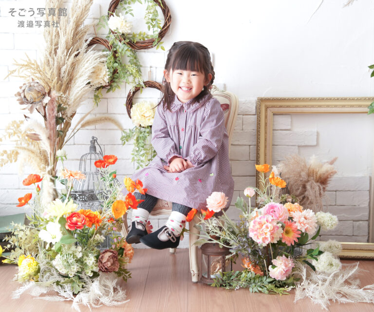 お花に囲まれた、まるでおとぎ話のワンシーンのような世界観の中で、お嬢様の明るい個性がキラリと輝く一枚になりました♩