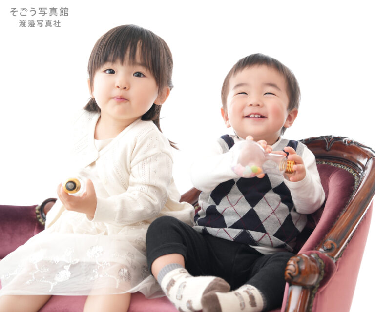 お嬢様のおすましした可愛らしさと、男の子の弾けるような笑顔。お互いの存在が安心感を与えてくれるような、ごきょうだいならではの温かい一枚になりました♩
