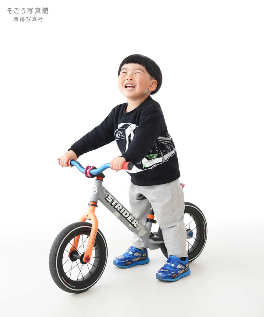 大好きなかっこいい自転車と一緒に、リラックスした様子で撮影を楽しんでくれました。