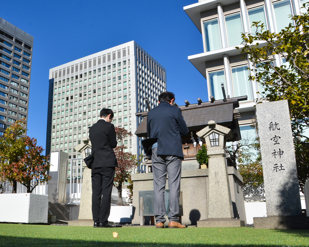 こちらは昭和6年に建立、鎮座50年を記に航空関係者や旅行者の安全を祈願する神社となったそうです。【空の安全=落ちない】事をお祈り出来るとの事で、受験の合格祈願でも知る人ぞ知る神社になっています。こちらでも皆さまがより高く飛び立てるように祈願してきました。