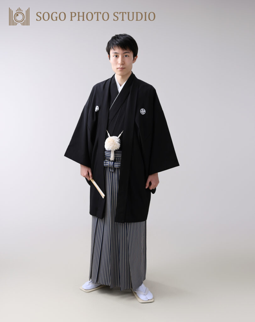 レンタル衣装はクラシカルな黒紋付から、華やかな紺色、灰色、白色と計7着ほどご用意しております。